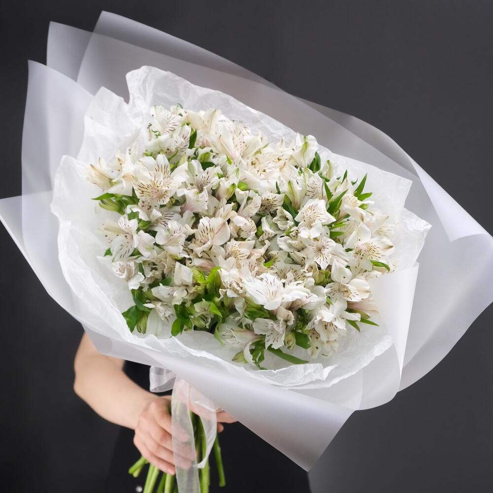Альстромерия – 21 шт.подкормка для срезанных цветов – 1 шт.инструкция по уходу за цветами – 1 шт.упаковка (тишью и матовая пленка) – 1 шт.