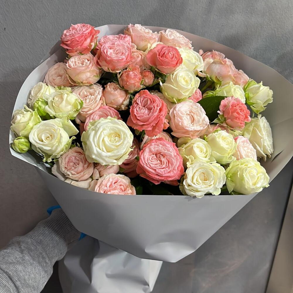 Гвоздики, Кустовые розы, Пионовидные розы, Розы
