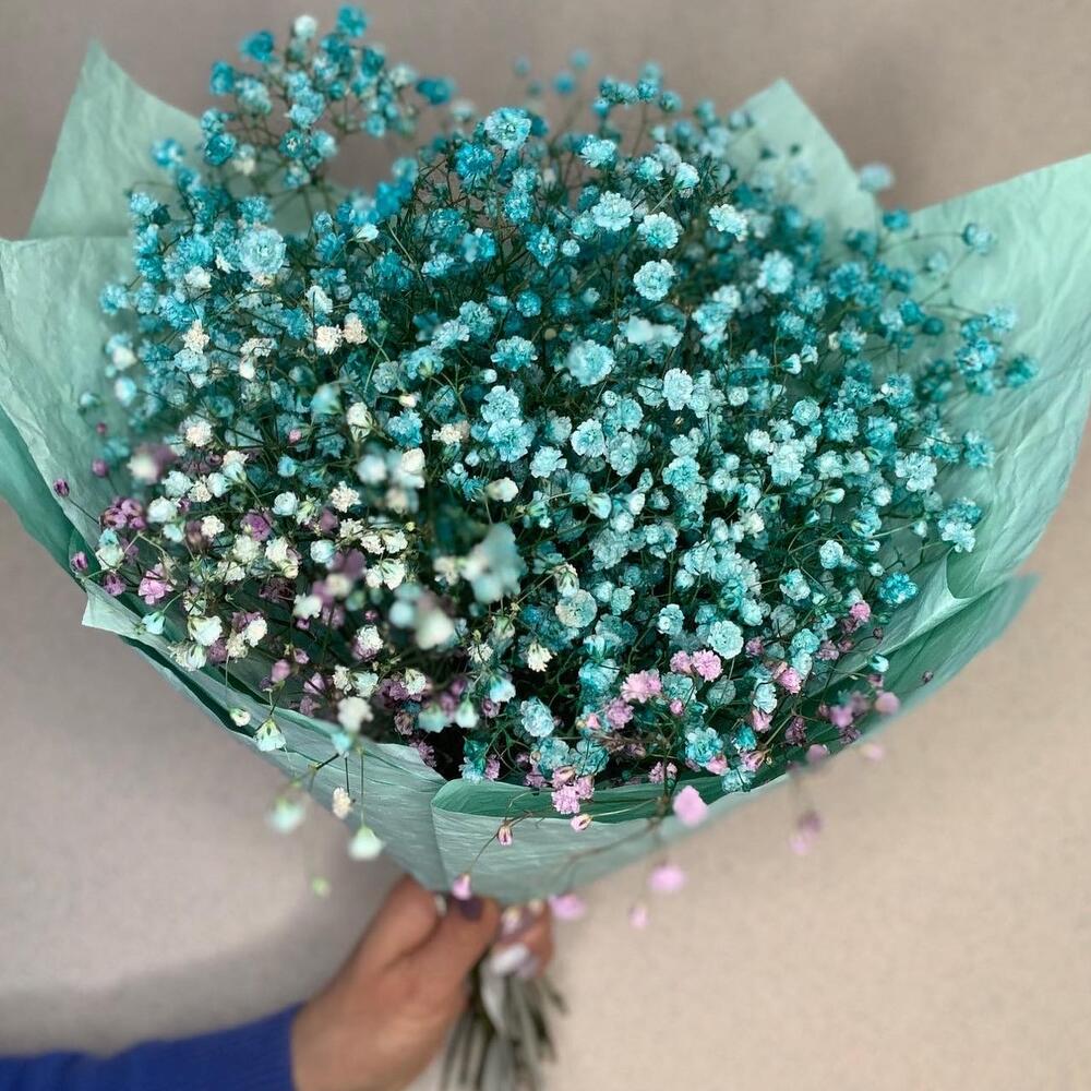 Букет гипсофил «Яркая бирюза»