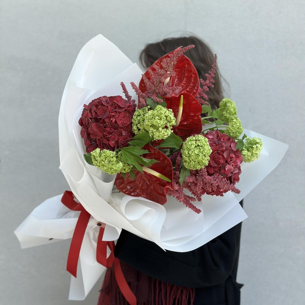 Гвоздики, Гортензии, Кустовые розы, Лизиантусы, Пионовидные розы, Розы