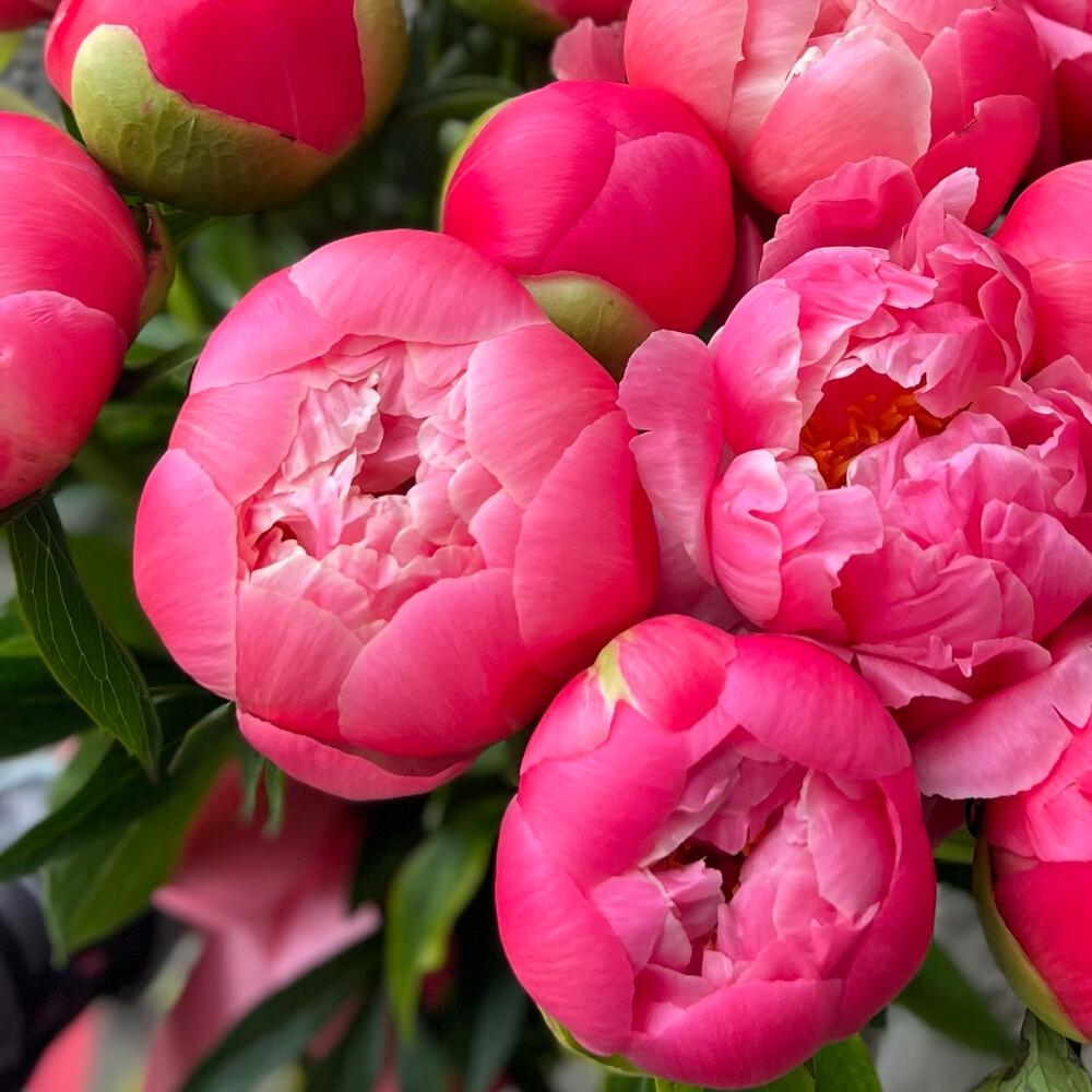 Пион коралл сансет – 21 шт.Лента атласная – 2 шт.