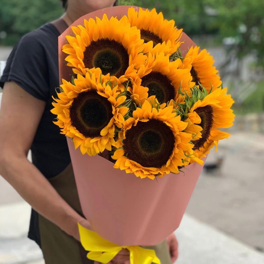Подсолнух – 7 шт.Упаковка дизайнерская – 1 шт.Лента атласная – 1 шт.