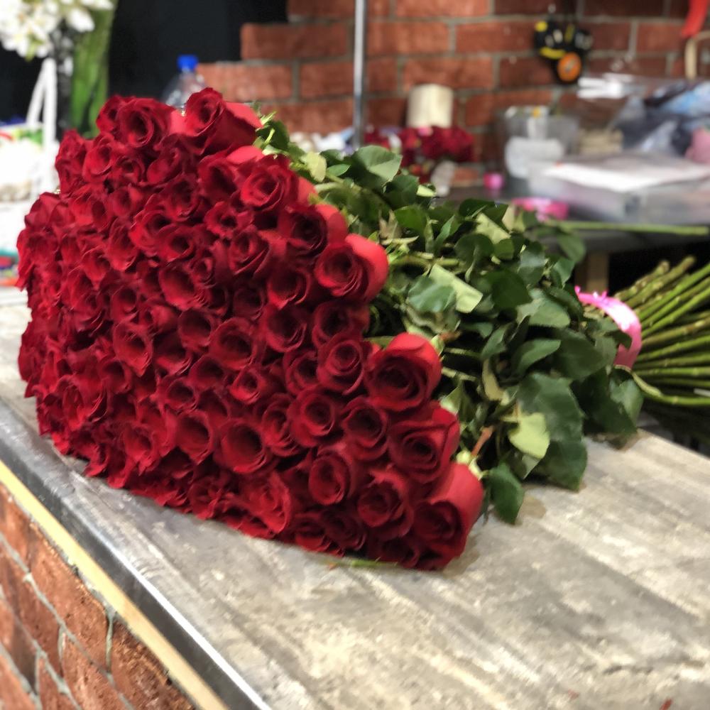 роза красная эквадор 100 см – 101 шт.Лента атласная – 1 шт.
