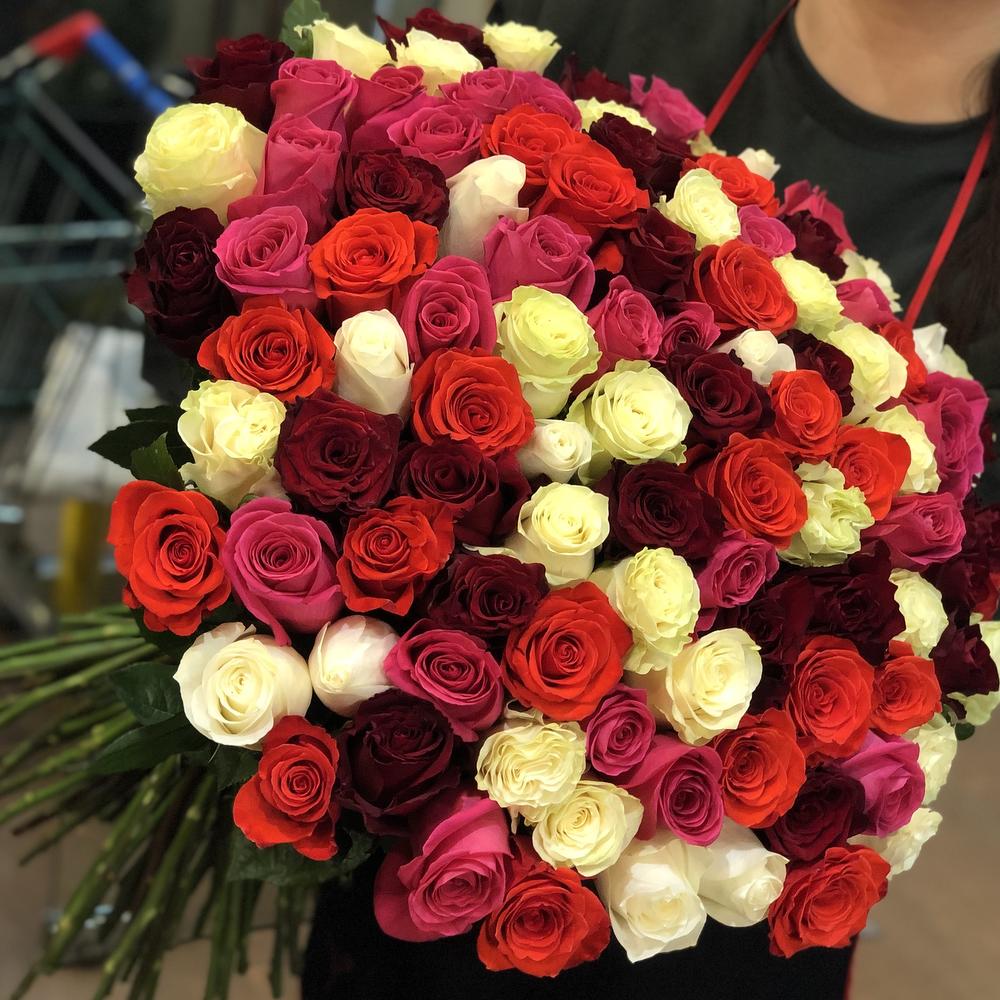 Роза Эквадор 60 см – 101 шт.Пленка прозрачная – 1 шт.Лента атласная – 1 шт.
