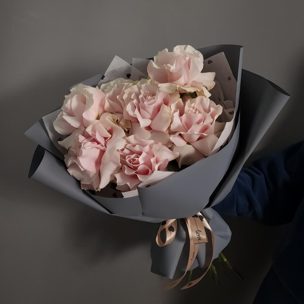 Упаковка дизайнерская – 1 шт.Аквапак – 1 шт.Средство для продления жизни цветов – 2 шт.вывернутая роза пинк мондиаль – 7 шт.