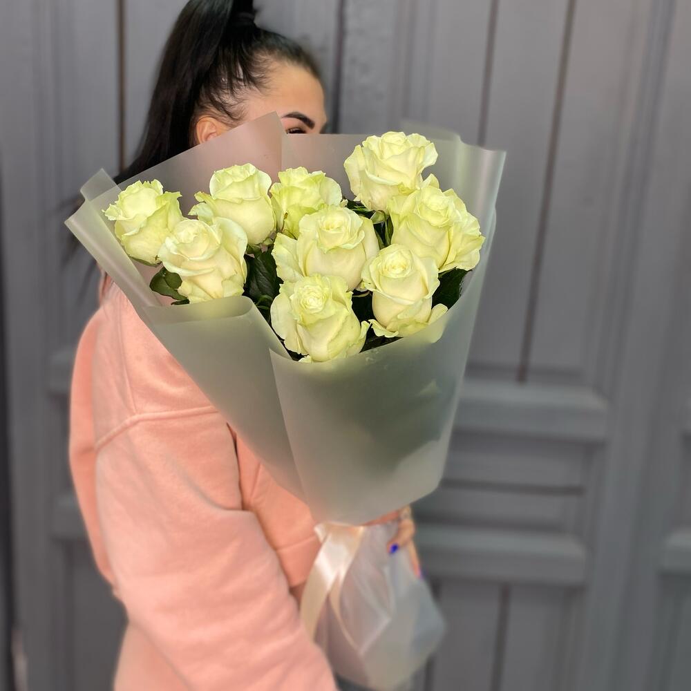9 белых роз 50 см