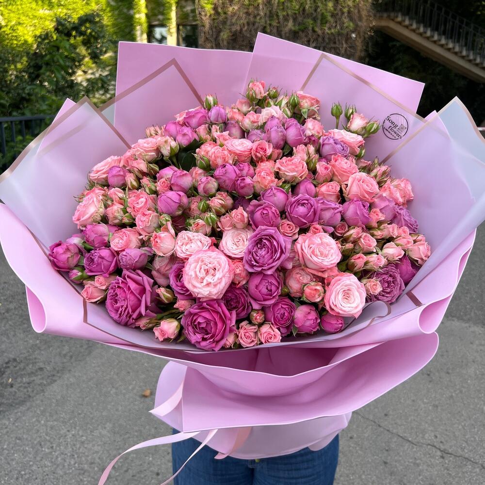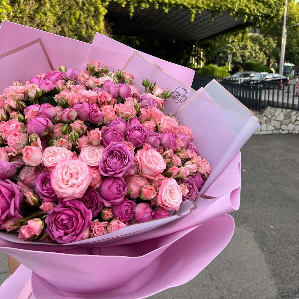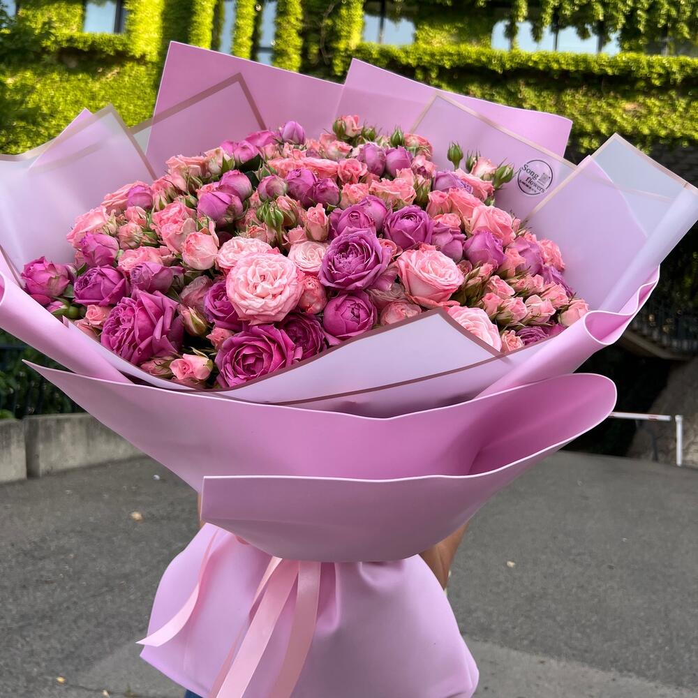 Гвоздики, Кустовые розы, Лизиантусы, Пионовидные розы, Розы