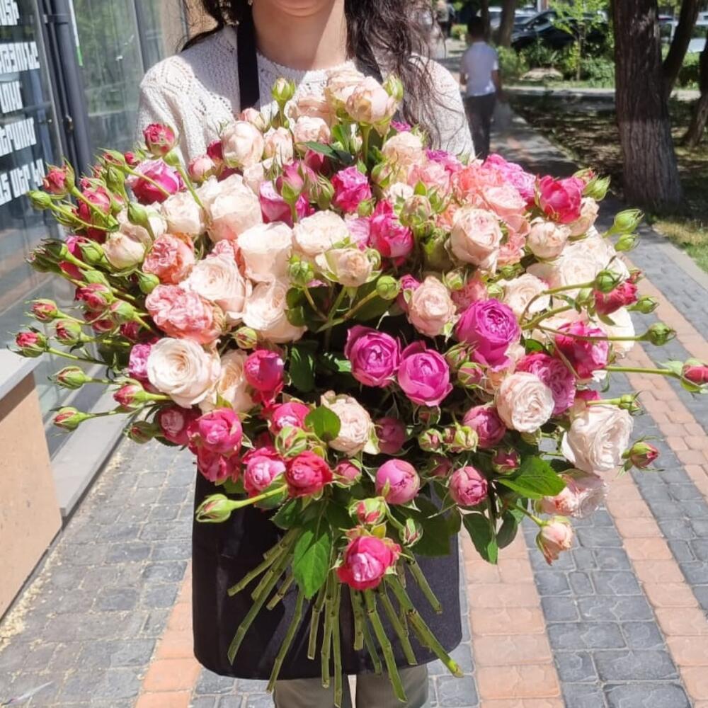 Гвоздики, Кустовые розы, Пионовидные розы, Розы