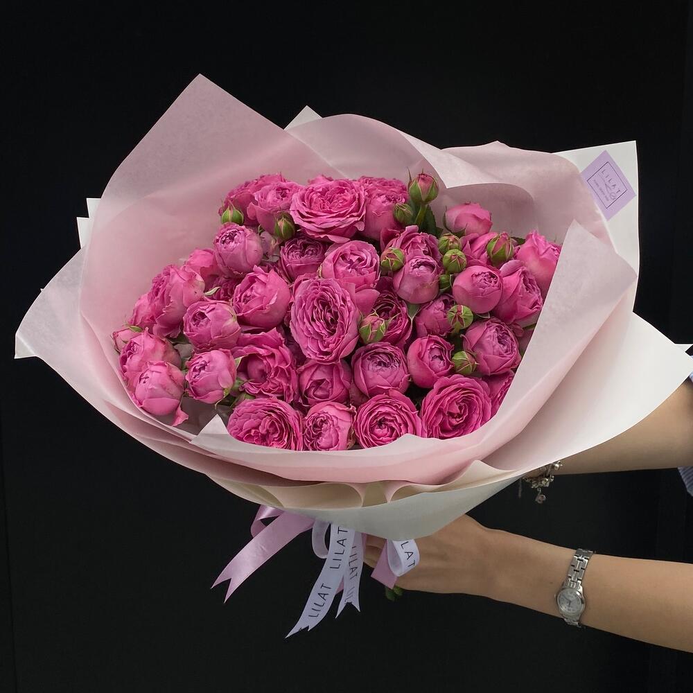 Misty Bubbles пионовидная роза – 9 шт. Упаковка дизайнерская – 2 шт. Открыточка с вашими пожеланиями – 1 шт. инструкция по уходу за цветами – 1 шт.