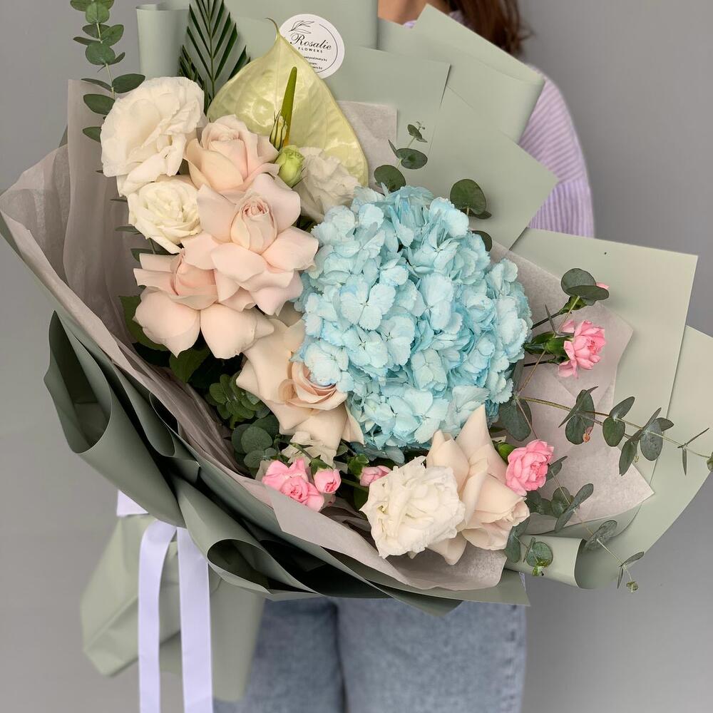 Альстромерии, Кустовые розы, Лизиантусы, Пионовидные розы, Розы, Ромашки