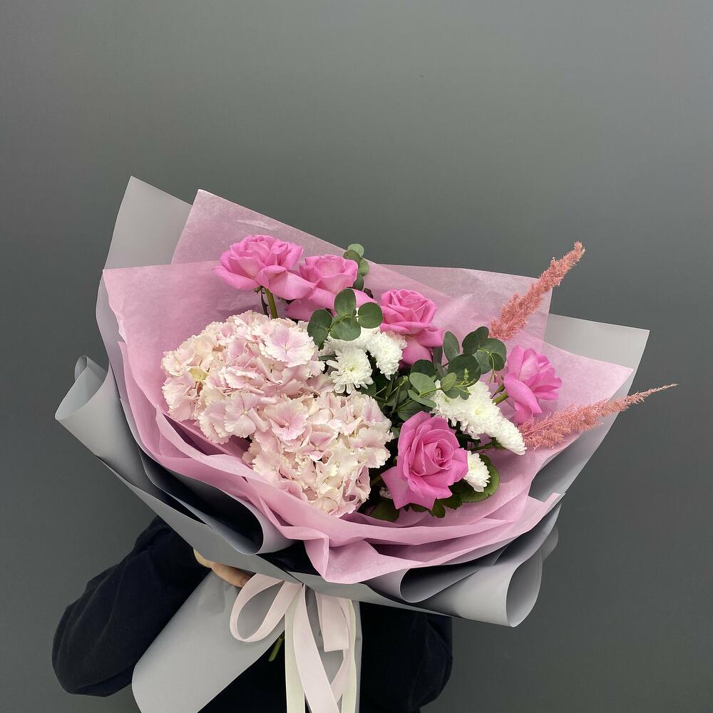 Гвоздики, Кустовые розы, Лизиантусы, Пионовидные розы, Розы