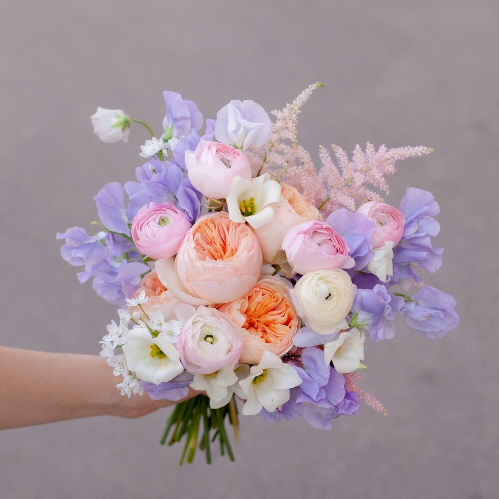 Букет невесты в персиково-сиреневой гамме
