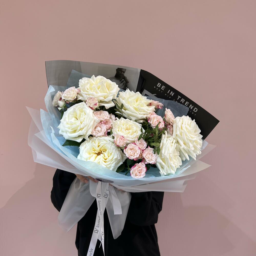 Гвоздики, Кустовые розы, Лизиантусы, Пионовидные розы, Розы