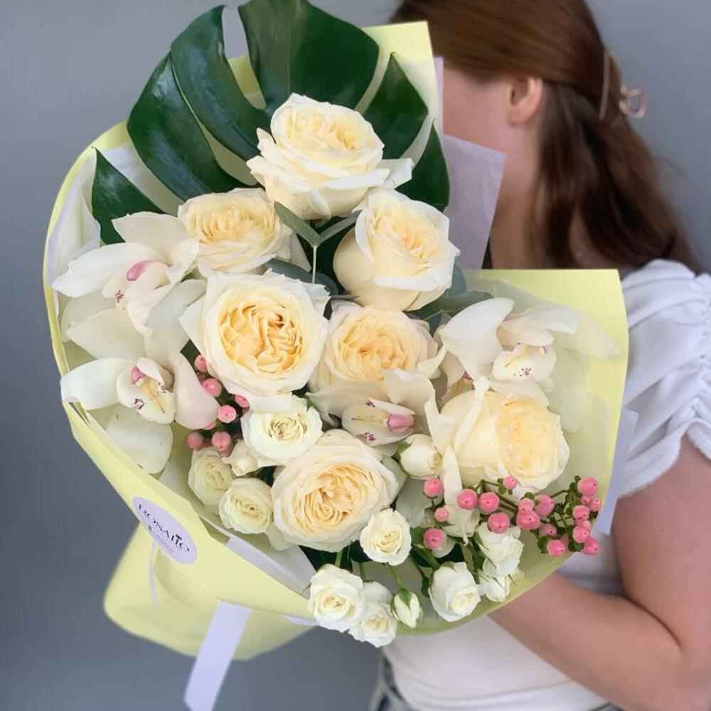 Гвоздики, Кустовые розы, Лизиантусы, Пионовидные розы, Розы