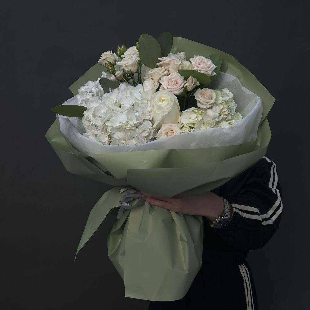 Альстромерии, Кустовые розы, Лизиантусы, Пионовидные розы, Розы, Ромашки