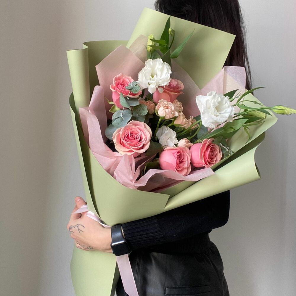 Гвоздики, Кустовые розы, Лизиантусы, Пионовидные розы, Розы