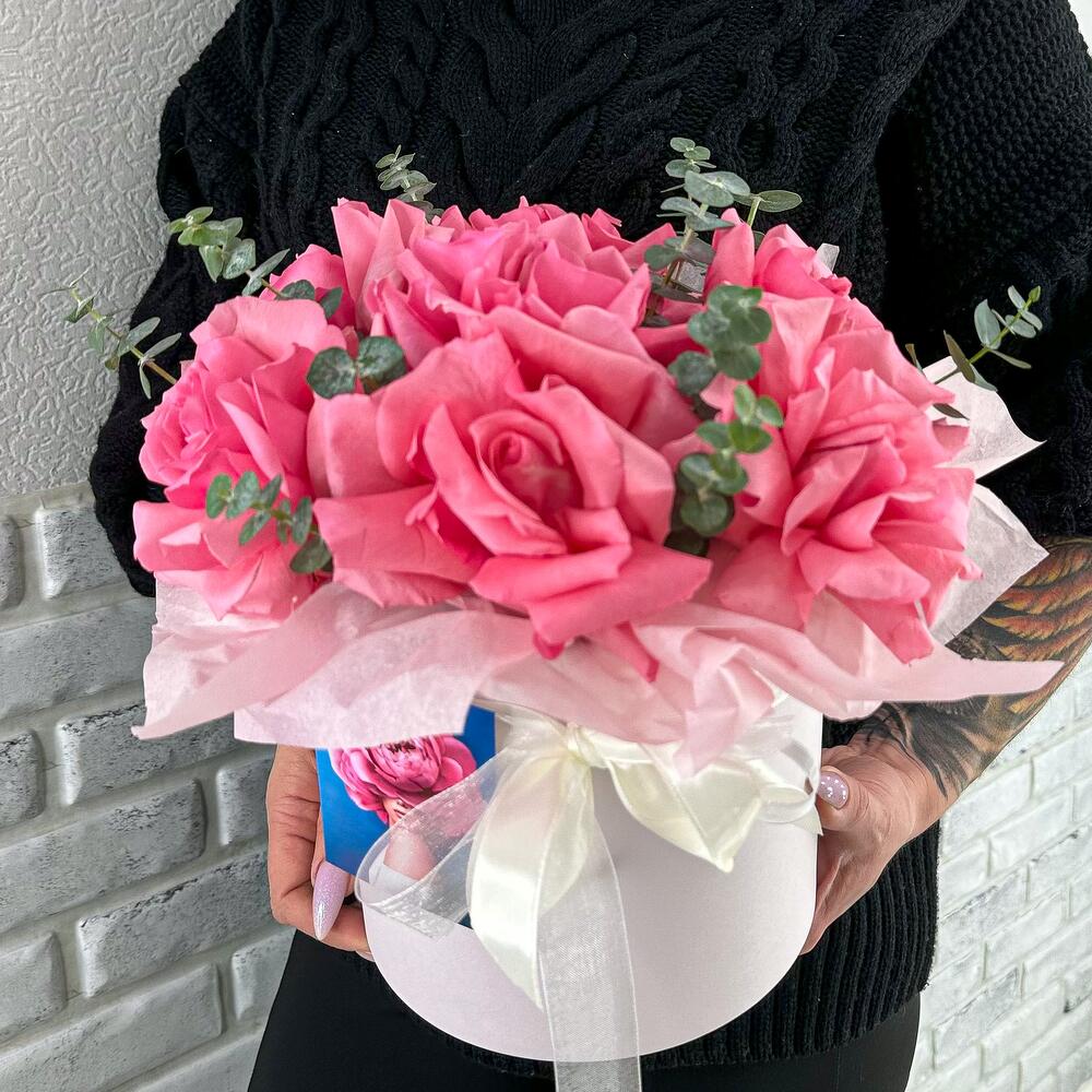 Нежная,изящная шляпная коробка с розовой вывернутой розой сорта Sweet Unique с добавлением ароматного эвкалипта.Притянет взгляд словно магнит и не оставит никого равнодушным!К каждой композиции мы приложим инструкцию по уходу и подкормку для продления жизни цветов!Чтобы букет Вас радовал,как можно дольше!Добавляйте товар и магазин в избранное,чтобы было легко нас найти