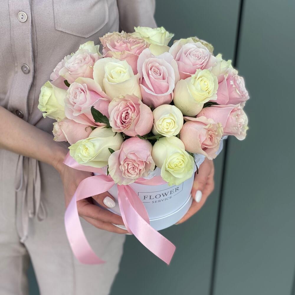 Коробка из розовых и белых роз !