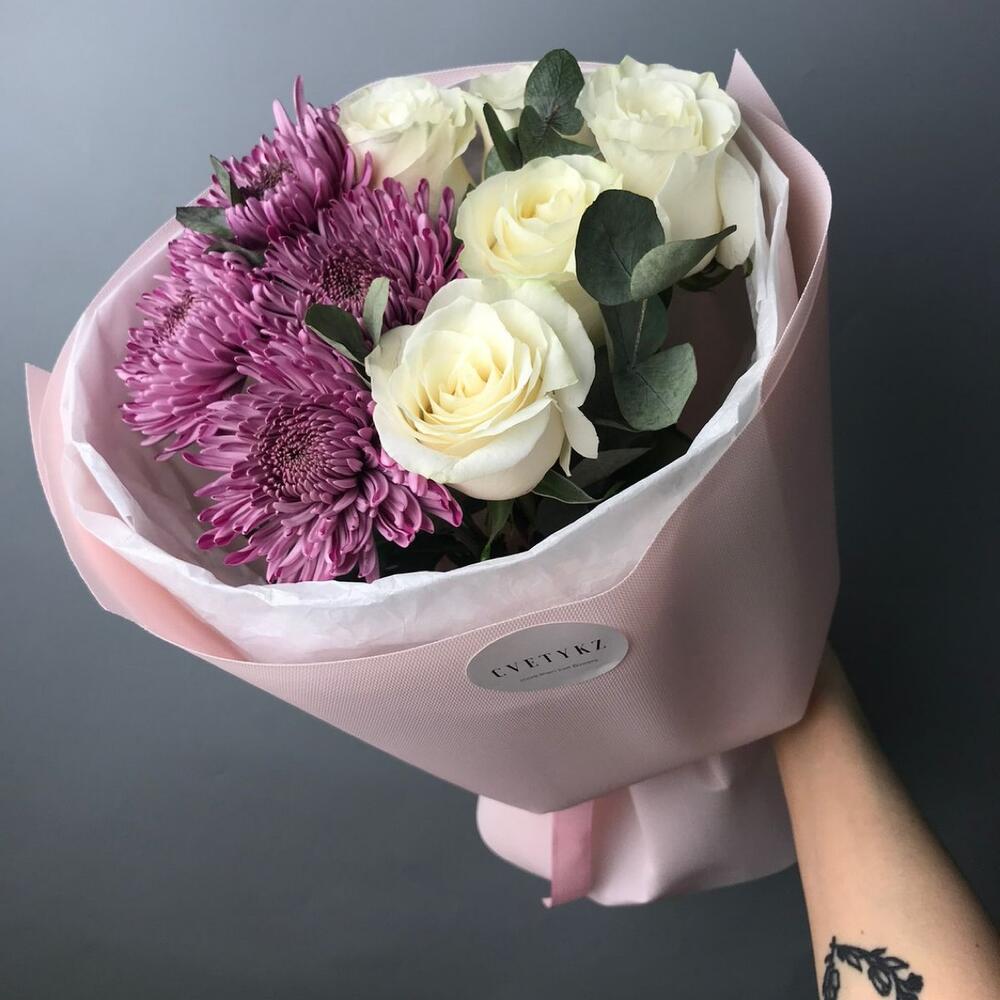 Гвоздики, Кустовые розы, Пионовидные розы, Розы