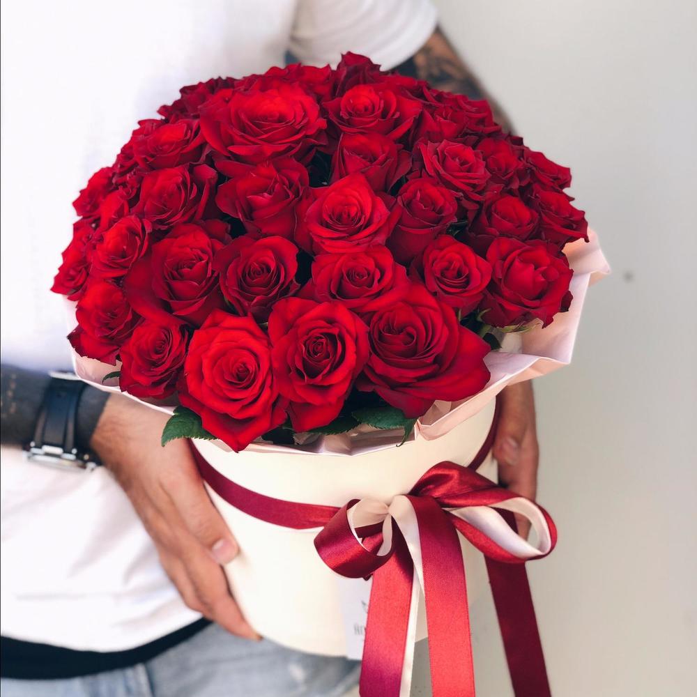 Роза – 39 шт.Оазис – 1 шт.Коробка шляпная – 1 шт.