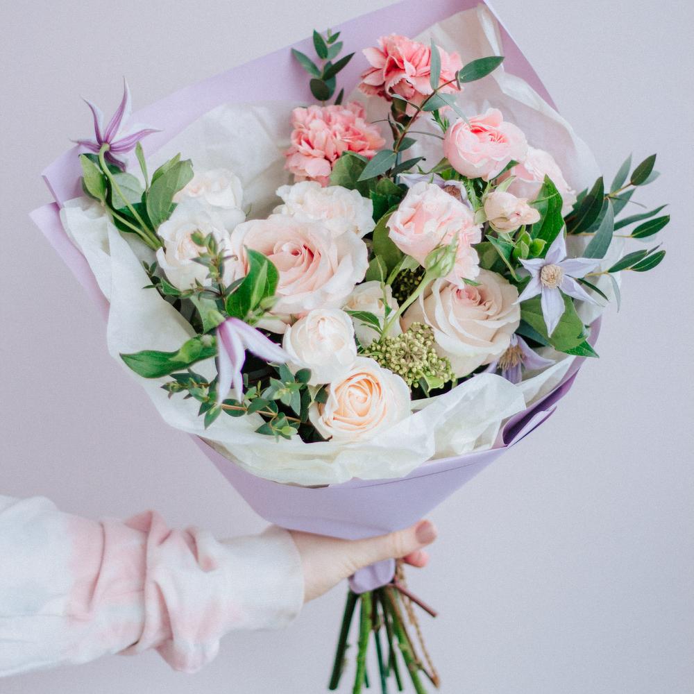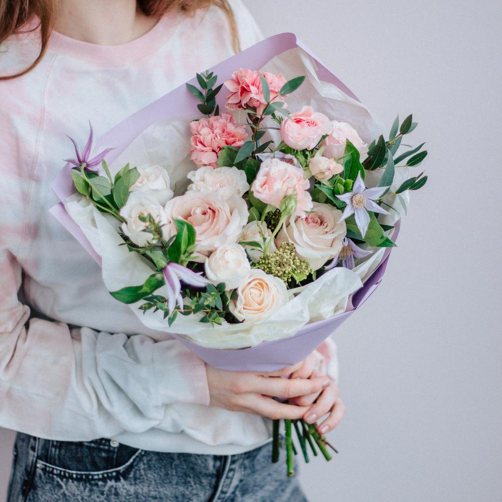Нежный букет с клематисами и розами