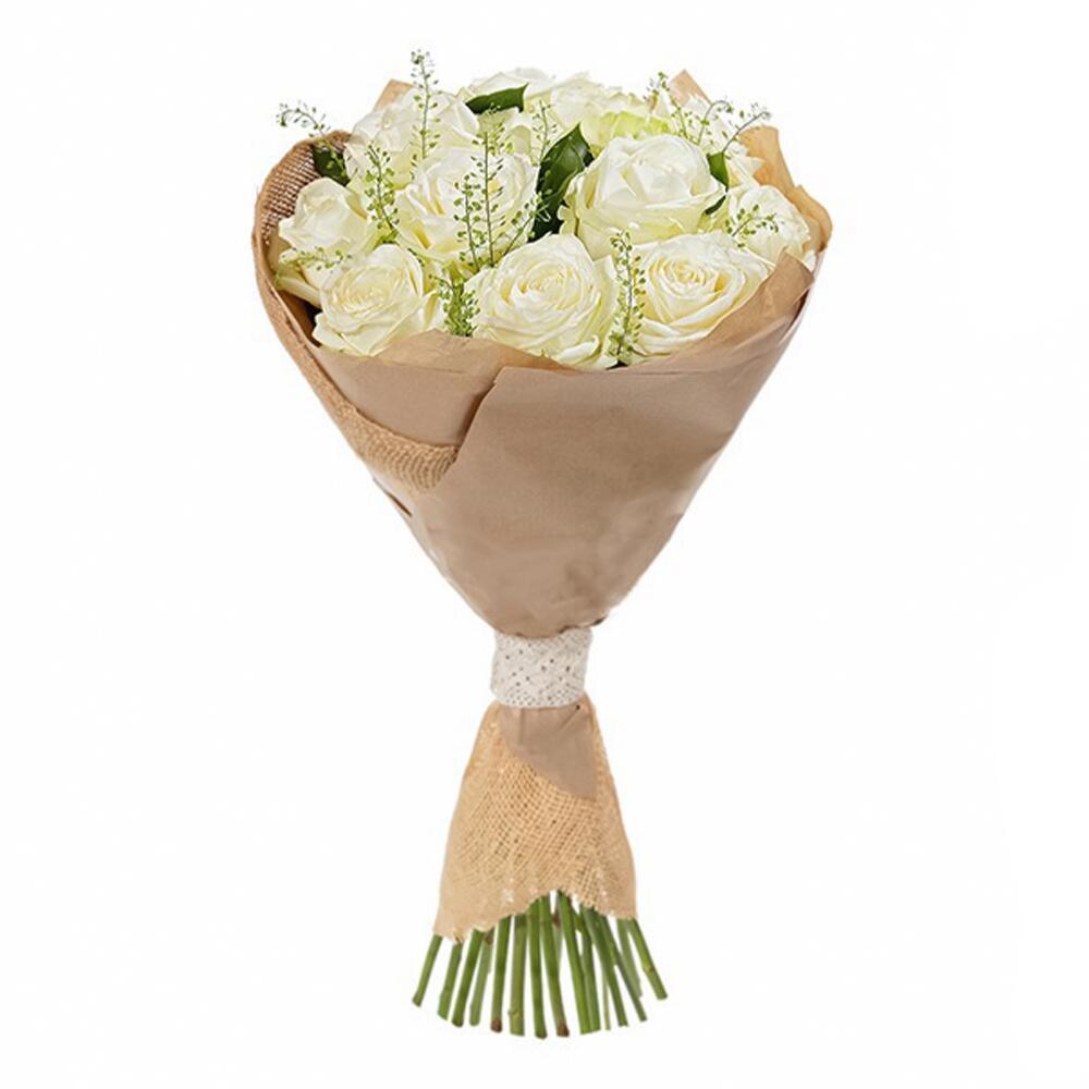 Лента атласная – 1 шт.бумага крафт – 1 шт.роза белый – 11 шт.