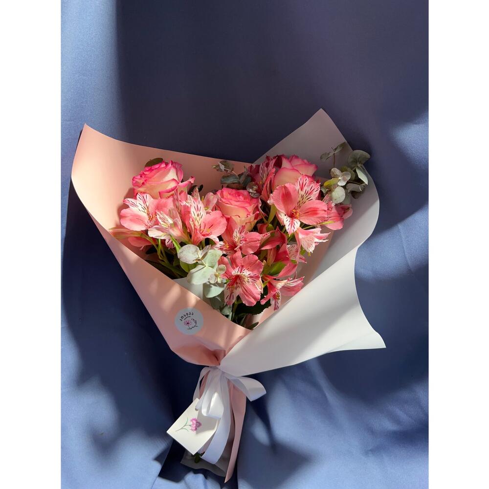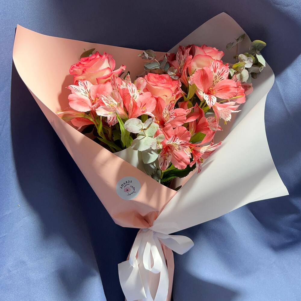 Альстромерии, Кустовые розы, Лизиантусы, Пионовидные розы, Розы, Ромашки