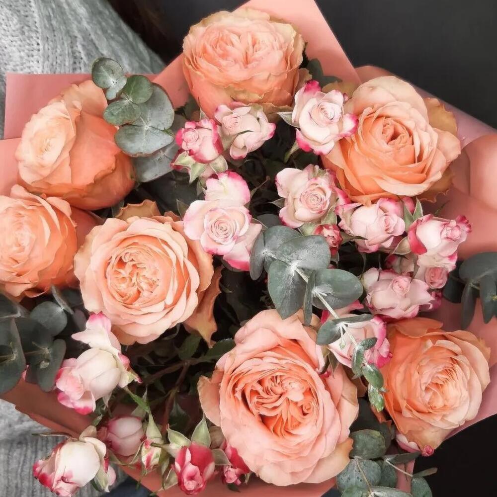 “Эвкалиптическая роскошь” гортензия и пионовидная кустовая роза
