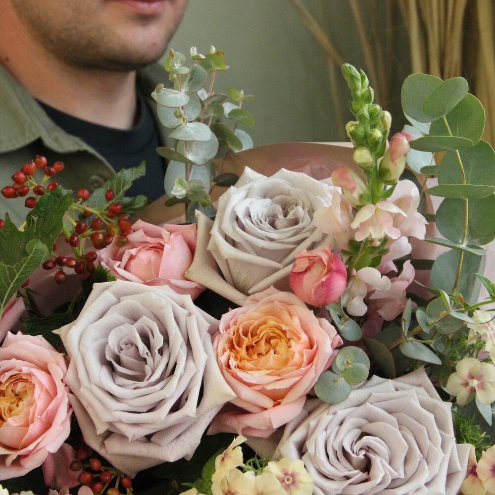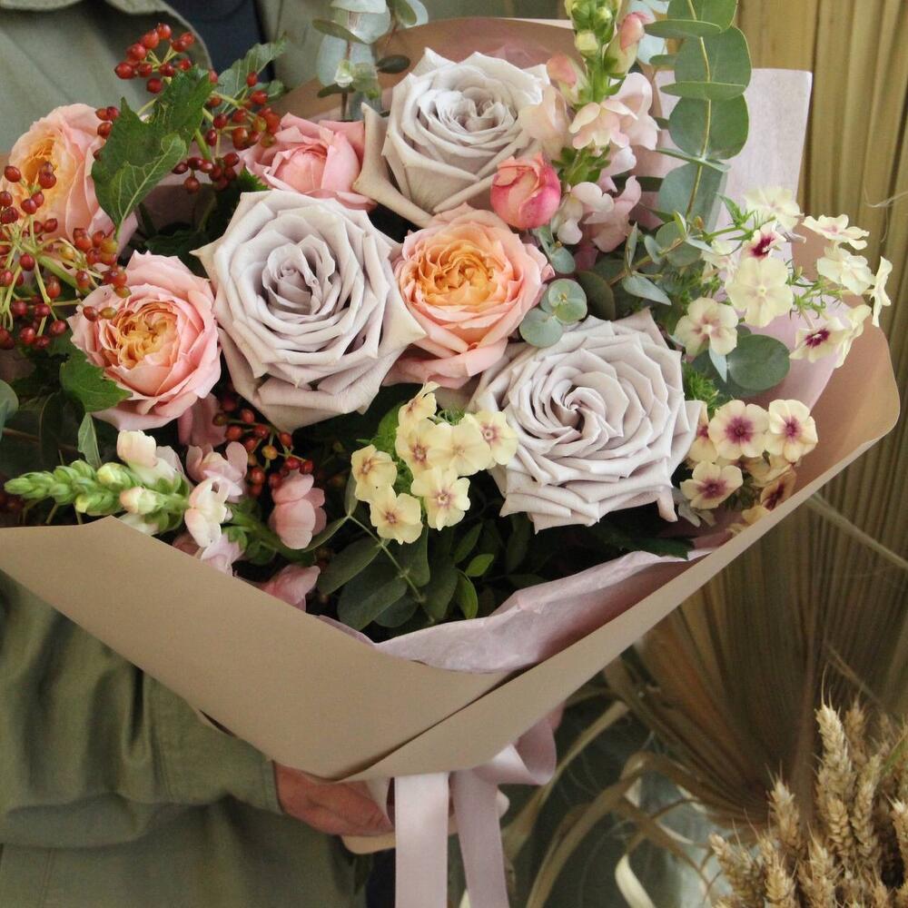 Гвоздики, Кустовые розы, Лизиантусы, Пионовидные розы, Розы